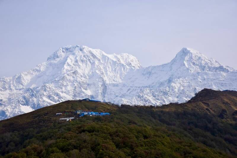 Diesem Berg werden wir uns die nächsten Tage immer entlang des Kammes davor zunehmend nähern. Der Mardi Himal Trek ist einer der wenigen Treks, bei dem man trotz der kurzen Zeit wahnsinnig nah an die Bergriesen herankommt. Unser höchstes Ziel ist ein Aussichtspunkt auf 4200 Meter am 4. Tag.