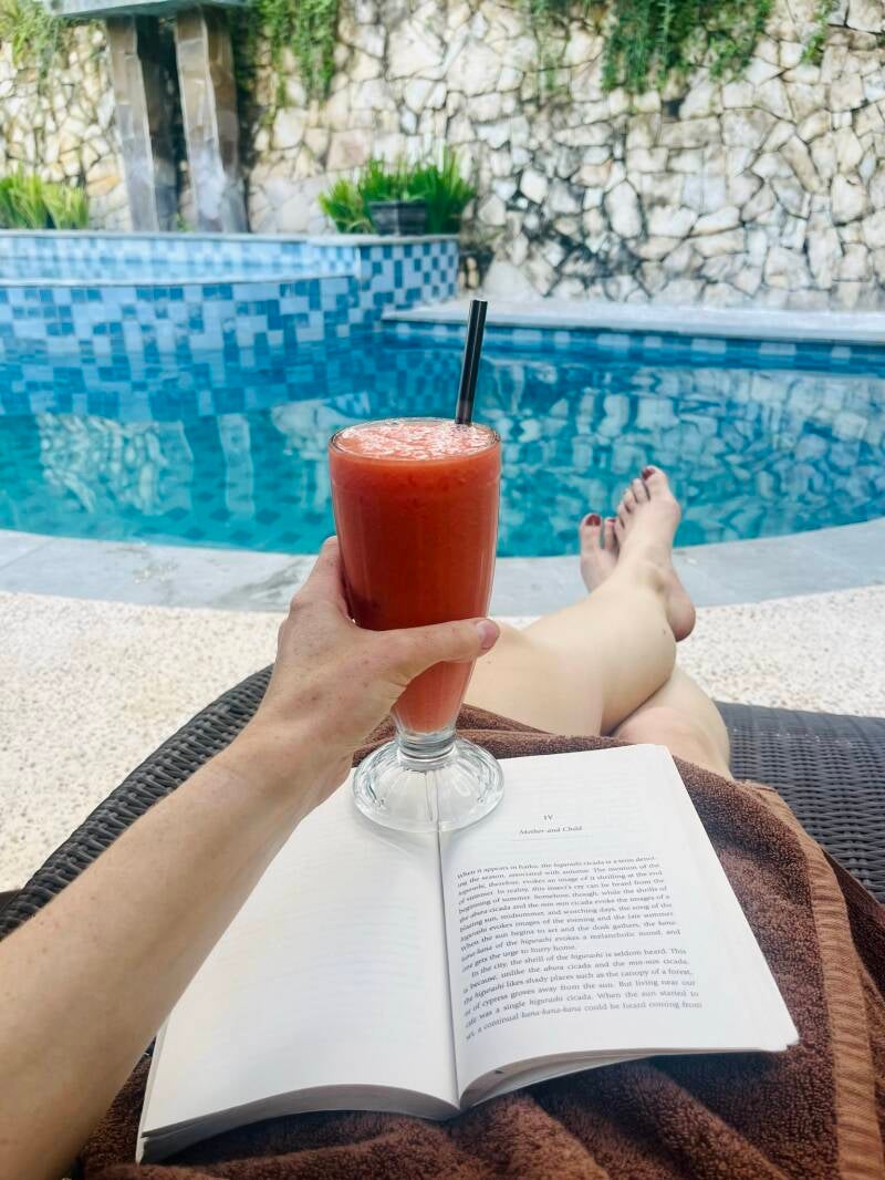 Baden ging ich ansonsten im Pool meiner kleinen Hotels. :-) Ich genoss zwei wohlverdiente Massagen nach meiner Wanderung. Und ging jeden Tag in eines der Yogastudios - ich probierte mal andere Yogastile aus als mein gewohntes Vinyasa wie Asthanga und Yin Yoga und genoss es zur Ruhe zu kommen und die Seele baumeln zu lassen. Vor allem das Ashtari auf dem Berg hatte das Yogashala mit dem traumhaftesten Blick überhaupt - mit Blick hinunter zu Küste, einem inspirierenden Yogalehrer aus Costa Rica und anschließendem kostenlosen Kombucha in ihrem Panorama-Café als Abschluss des Kurses.
