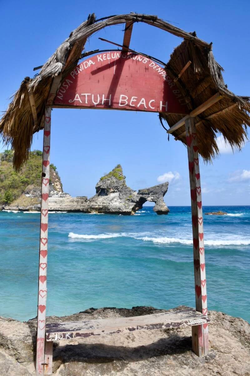 Ich habe zwei volle Tage auf Nusa Penida, die ich auch voll auskosten werde. Am ersten Tag zeigte mir meine Gastgeberin eine Abkürzung, durch welche ich nach einem 30 minütigen Spaziergang (laufen tun tatsächlich nur die Deutschen hier :-P) zur Küste gelangte. Eine der schönsten Strände der Insel - der Diamond Beach - liegt dort. Die Steilküste ragt hier bis zu ca. 200 Meter in die Höhe. Man hat mehrere traumhafte Aussichtspunkte, zu meinem Leidwesen aber auch haufenweise Instagram Hotspots... witzig ist jedoch, sich einfach mal daneben zu setzen und das Treiben zu beobachten. Die Indonesier sind ja clever und lassen sich jeden Fotospot bezahlen. Da gibt es zum Beispiel eine Holzterrasse, lebensgroße Herzen aus Holz, Schaukeln oder Bambus-Baumhäuser, deren einziger Sinn es ist, auf der Treppe hinauf und hinab zu flanieren und das perfekte Foto und Video zu machen. Und tatsächlich stehen die Instagrammer dann bis zu einer Stunde Schlange! :-P